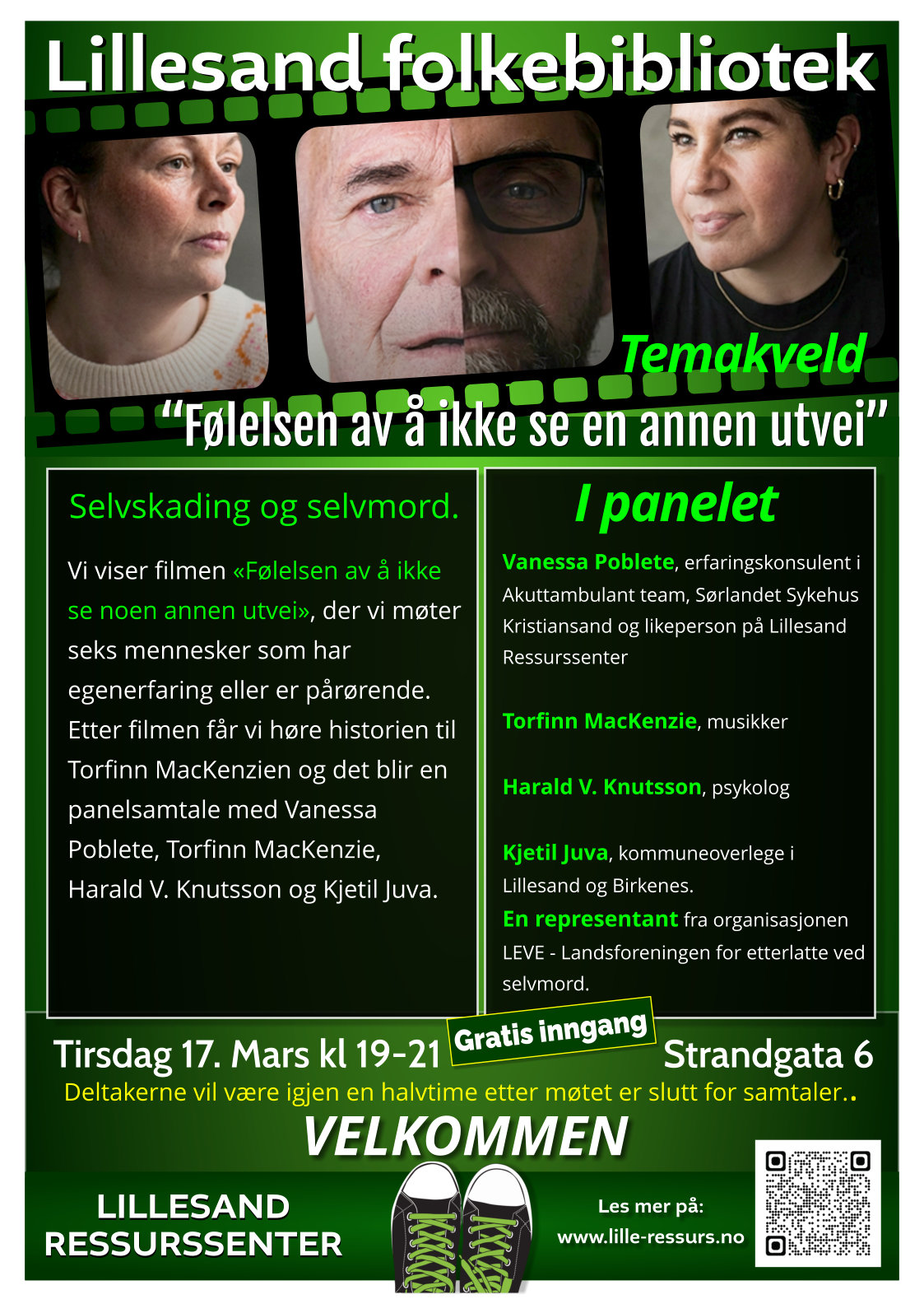 Kjetil Juva, kommuneoverlege i Lillesand og Birkenes.En representant fra organisasjonen fra LEVE - Landsforeningen for etterlatte ved selvmord.
